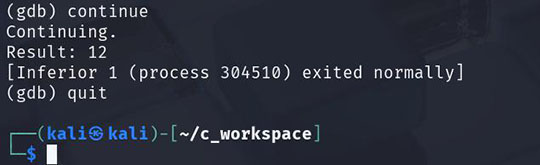 ※"continue"、"quit"でGDBを終了させてください。