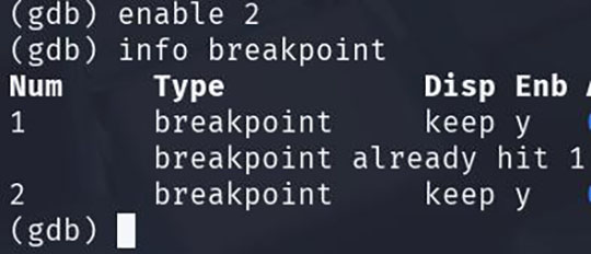 さらに "tbreak"(1回だけ)や条件付きブレークを使うと、見たい瞬間だけ止められます。止め方を制することが、GDBとエクスプロイト理解の第一歩になりますね。