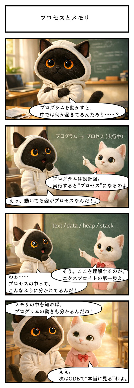 黒ネコと学ぶエクスプロイト基礎 プロセスとメモリ(episode-04)