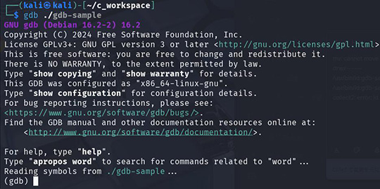 Kali Linux では、通常 GDB は標準インストール済みです。