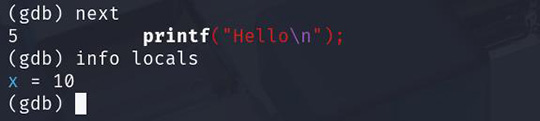 GDBの"break"、"backtrace"、"frame"、"info locals"を使うことで、