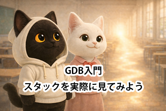くろちゃんと白猫先生と一緒に、「スタックって何が入ってるの?」「GDBでどうやって見るの?」を、ひとつずつ丁寧に理解していきましょう。