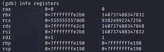 さらに関数の引数や戻り値をやりとりするRDI・RSI・RAX・RCX・R8・R9などの汎用レジスタもあります。GDBのinfo registersを使えばこれらの値を実際に観察でき、ステップ実行することで関数呼び出しやスタックフレームの変化も追えます。